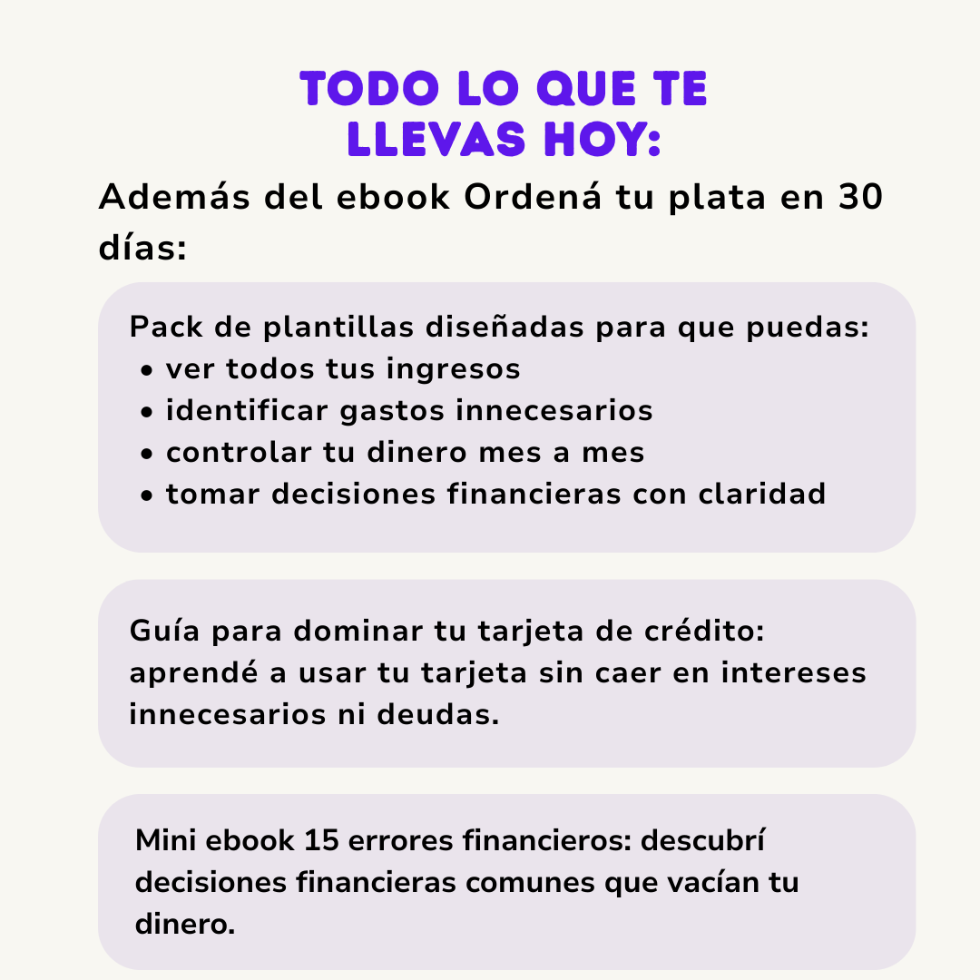 EBOOK ORDENÁ TU PLATA EN 30 DÍAS + PACK DE PLANTILLAS + 4 BONUS DE REGALO